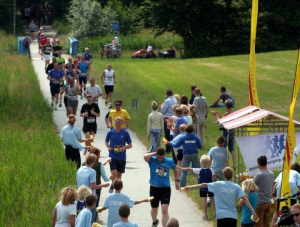 ‘Voordat de verenigingsstatus 20 jaar geleden een feit was, had Marco Rademaker al tweemaal een triathlon vanaf het gemeentehuisplein georganiseerd, met in het eerste jaar 400 deelnemers en het tweede jaar liefst 600. Nog steeds sportieve hoogtepunten in het jongste dorp van Nederland.’