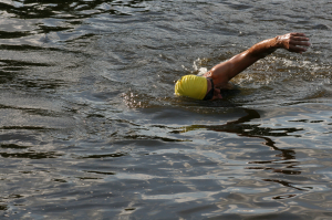 Ook zondag hoor ik een watertrappelende triatleet zijn gespannen kijkende buurman vragen wat hier ook alweer zo leuk aan is, om na de finish het antwoord te zien in elkaars ogen.