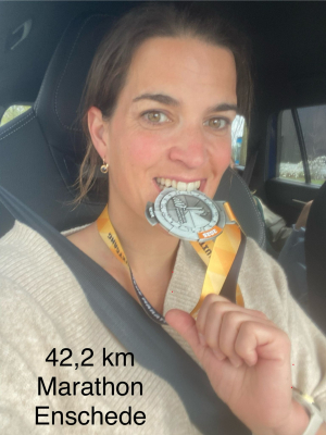 Marloes liep samen met haar vriendin om hun 40e verjaardag te vieren. Blessures vooraf zorgden voor een verplichte rustperiode, maar op wilskracht stonden ze toch samen aan de start. De afspraak: als het niet gaat, mag de ander door. Uiteindelijk moest haar vriendin uitstappen, Marloes liep al eventjes verder voor en haalde de finish in 4:13:34 – wat een kracht! Na de finish had ze door dat haar vriendin niet verder zou kunnen en had zij te horen gekregen dat ze uitgestapt was.