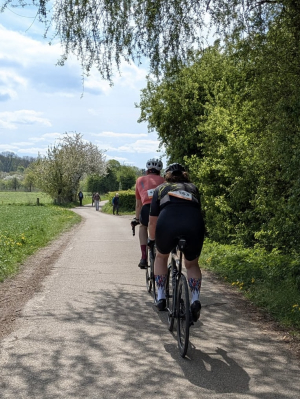 Al snel blijken Maartje en Stefan even sterke klimmers te zijn. Ik kan ze aan het begin van de klimmetjes nog bijhouden, maar als het te steil wordt of te lang duurt, dan ben ik weg. Ik word steeds banger voor die Keutenberg (Klotenberg) aan het eind en probeer steeds zoveel mogelijk op souplesse omhoog te gaan om niet al mijn kruit te verschieten. Na elke klim probeer ik vervolgens het gat dicht te rijden, soms door van groepje naar groepje te gaan. Zo ook bij de schitterende en lange klim van Camerig (3,1 km gem. 4,8%). Eerder op de Loorberg moest ik ze al lossen en pas onderaan Camerig ben ik een paar meter achter ze, maar ik zie ze alweer omhoog gaan en de afstand tussen ons wordt weer langzaam groter. Op het vlakke voel ik me echter sterk, ik merk dat het me daardoor niet ontmoedigt. Voor de langste klim naar het Drielandenpunt wachten ze me op. We spreken af dat ze voortaan bovenaan even op me wachten, want ik ben bang dat ik zonder kopman- of vrouw mezelf op de tussenstukken teveel leeg fiets en dan dus geparkeerd kom te staan op die K*%@#tenberg aan het eind.