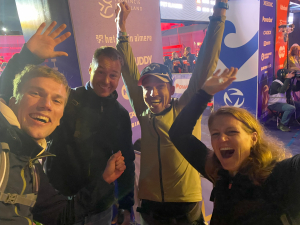 Dominic was er de hele dag bij, want was in de ochtend vrijwilliger. Daan van Oosten en Peter van Beek waren ook een groot deel van de dag aanwezig, maar gingen rond 18.00 uur naar huis vanwege de kou. Mylène sloot eind van de middag, begin van de avond, aan. Net als de andere leden van TVZ zorgden ze onderweg voor steun en aanmoediging. Daarnaast werd ik gevolgd via de TV en de tracker, wat ook een mooie visuele steun gaf. Geweldig, dank daarvoor.
